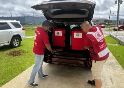On October 30, American Airlines became the first commercial airline to resume service from Miami to Jamaica. Through our partnership, we secured seats on the first flights to deploy additional humanitarian teams to distribute aid that addressed key needs in water, sanitation, shelter, medical care, and solar lighting. I spent the night before cold calling nonprofit organizations to ask who could get on that morning flight with American Airlines. Our quick coordination that night saw 12 responders board the following morning. As flight operations resumed, we continued to meet the demand for passenger requests and get aid workers to Jamaica.
